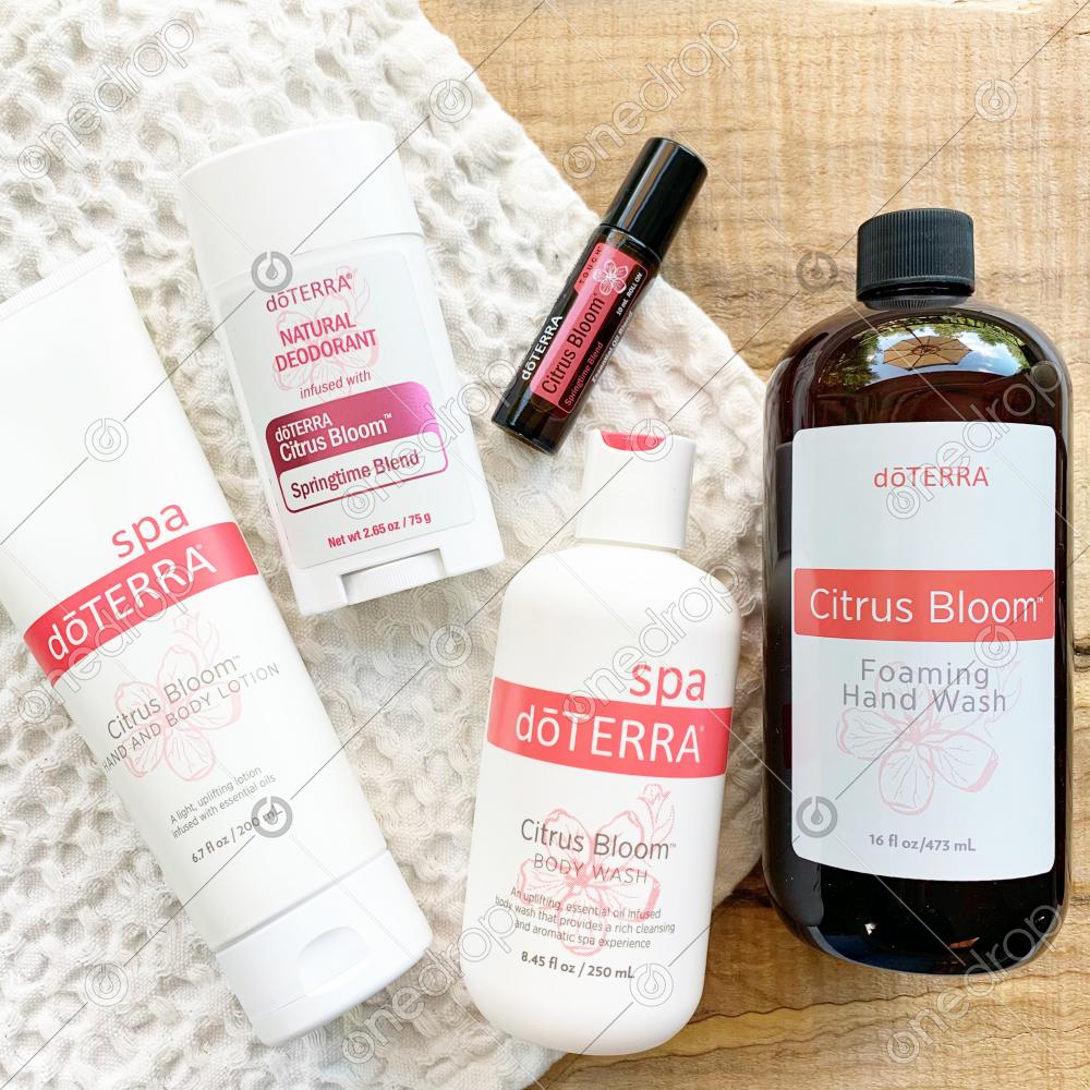 Features all of the Citrus Bloom Products (Citrus Bloom Hand & Body Lotion, Citrus Bloom Natural Deodorant, Citrus Bloom Body Wash, Citrus Bloom Foaming Hand Wash & Citrus Bloom 10ml Touch Roller).