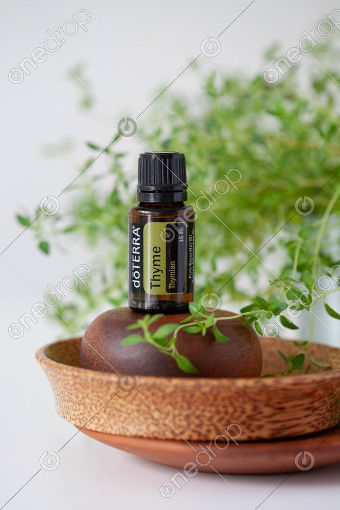 Close-Up of Thyme Essential Oil with Fresh Thyme