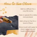 Images of Product of the Month including Emotional Benefits, How to use Clove, and Diffuser Blends.