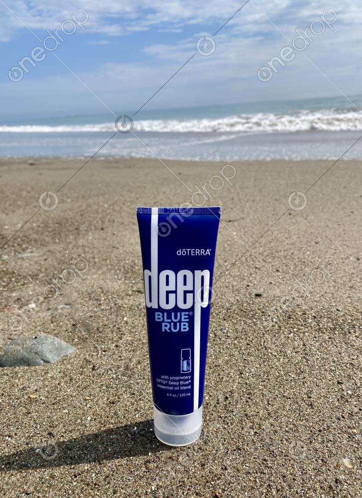 dōTERRA Deep Blue Rub on a sandy ocean beach