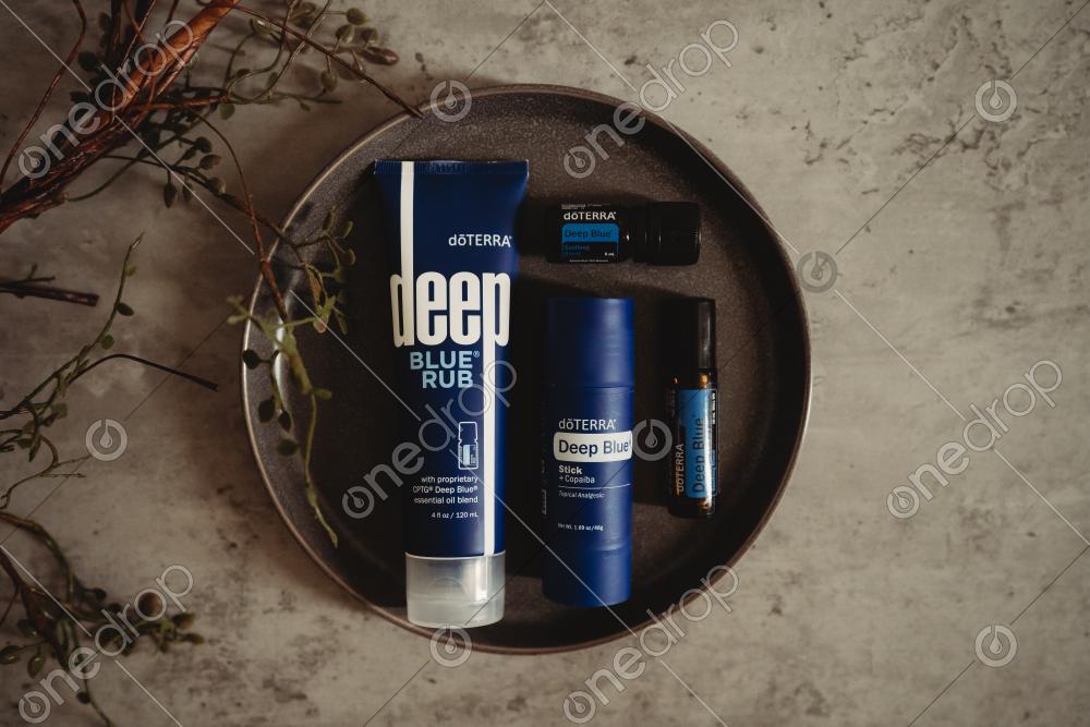 Warm, Earthy Styled Image: Deep Blue® Soothing Blend Products