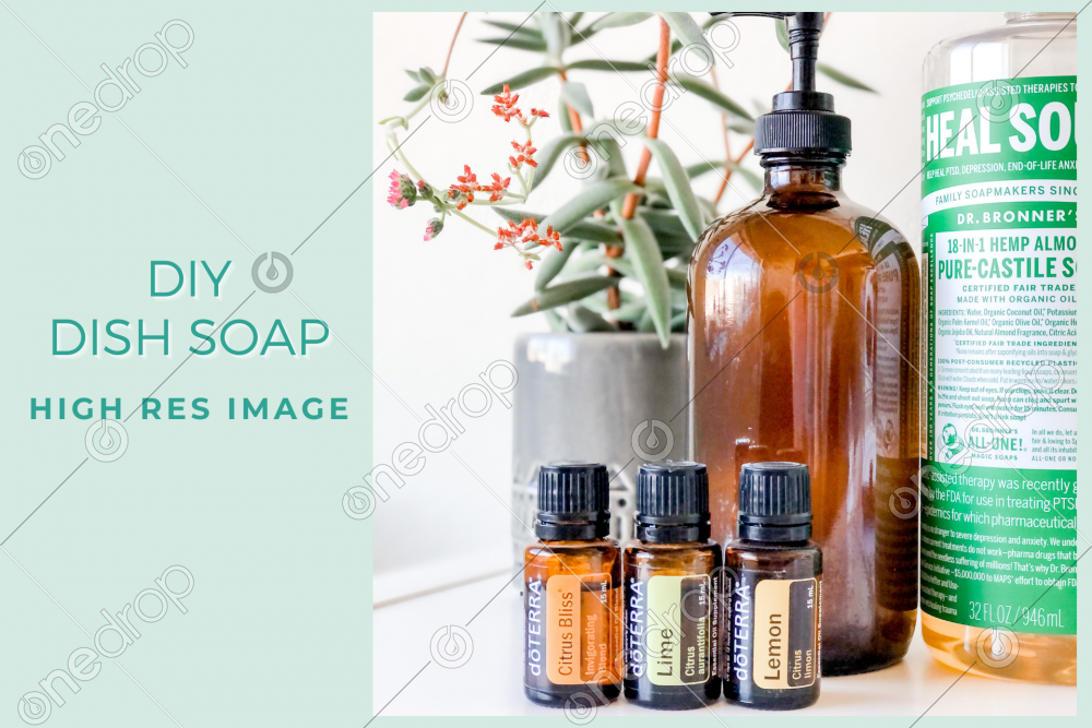 A high res image of a great idea for a DIY Dish Soap post. Image features all you would need to do the recipe below. Image would be great for a text message, Facebook or Instagram post or story, PB post, class, newsletter or more! Plenty of room to add your own text!