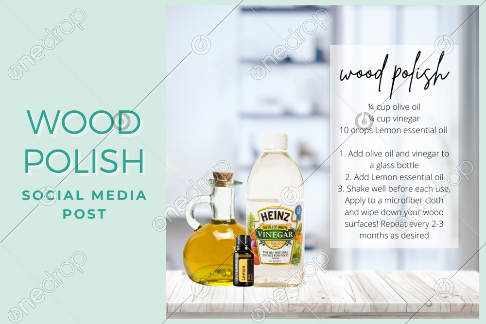 A high res image of a great idea for a DIY Homemade Wood Polish post. Image features all you would need to do the recipe included on the graphic. Image would be great for a text message, Facebook or Instagram post or story, PB post, class, newsletter or more! Plenty of room to add your own text!