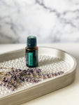 Spruce Leaf, Ho Wood Leaf, Frankincense Resin, Blue Tansy Flower, Blue Chamomile Flower, and Osmanthus Flower essential oils in a base of Fractionated Coconut Oil.