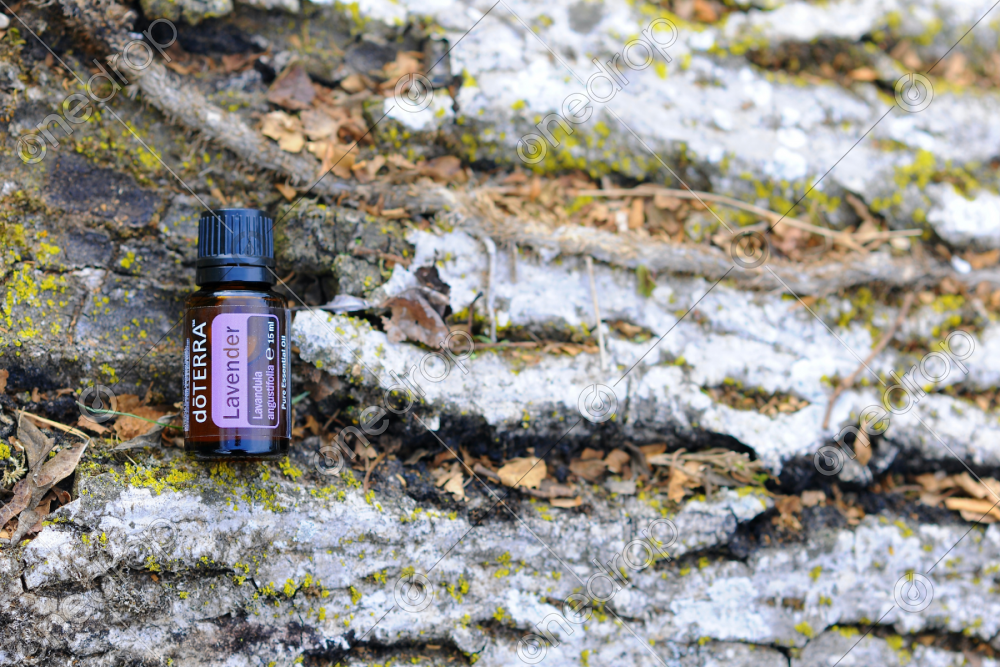 High-resolution image of Lavender 15 ml oil bottle on a woody background