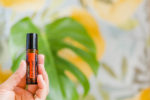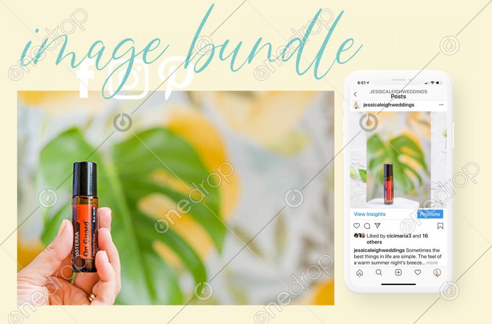 dōTERRA On Guard® Touch image bundle on yellow flower background with yellow flowers and leaves. Blank space can be used to add text or high resolution image can be cropped creatively for Instagram, Facebook, or social media.