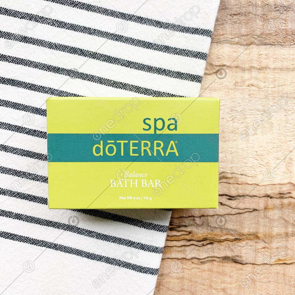 Features the dōTERRA Spa BALANCE BATH BAR in a Flat Lay.