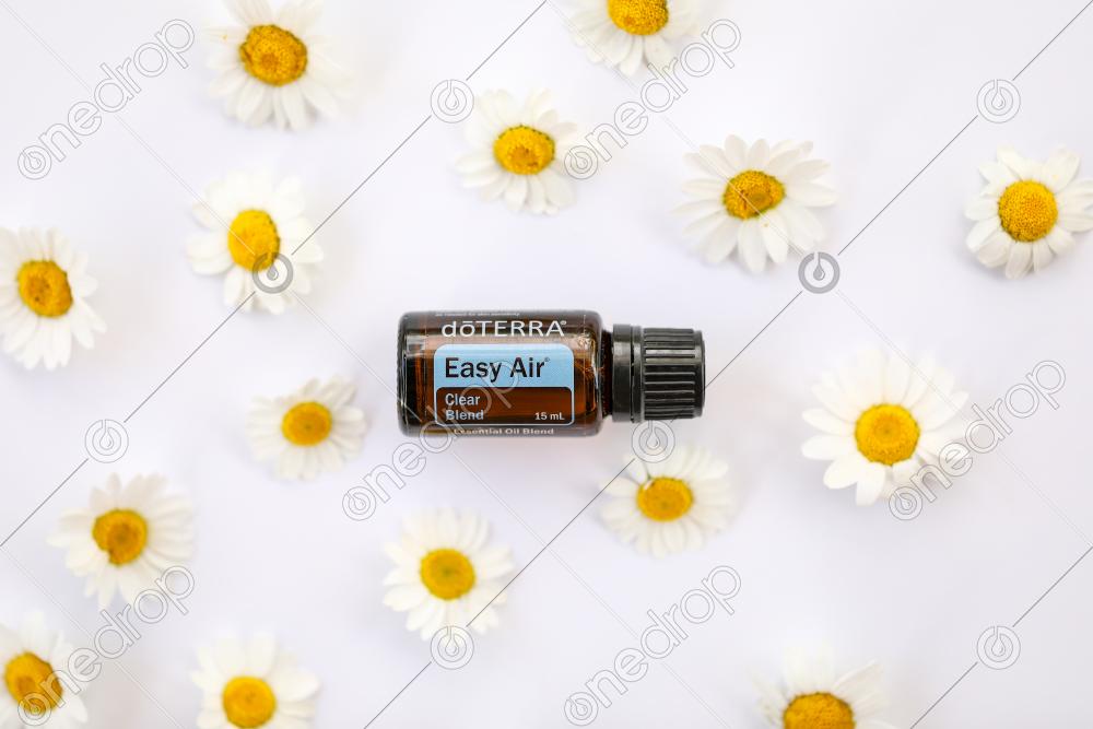 Easy Air on white background with chrysanthemum flowers