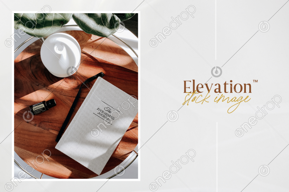 Elevation stock image featuring diffuser and gratitude journal