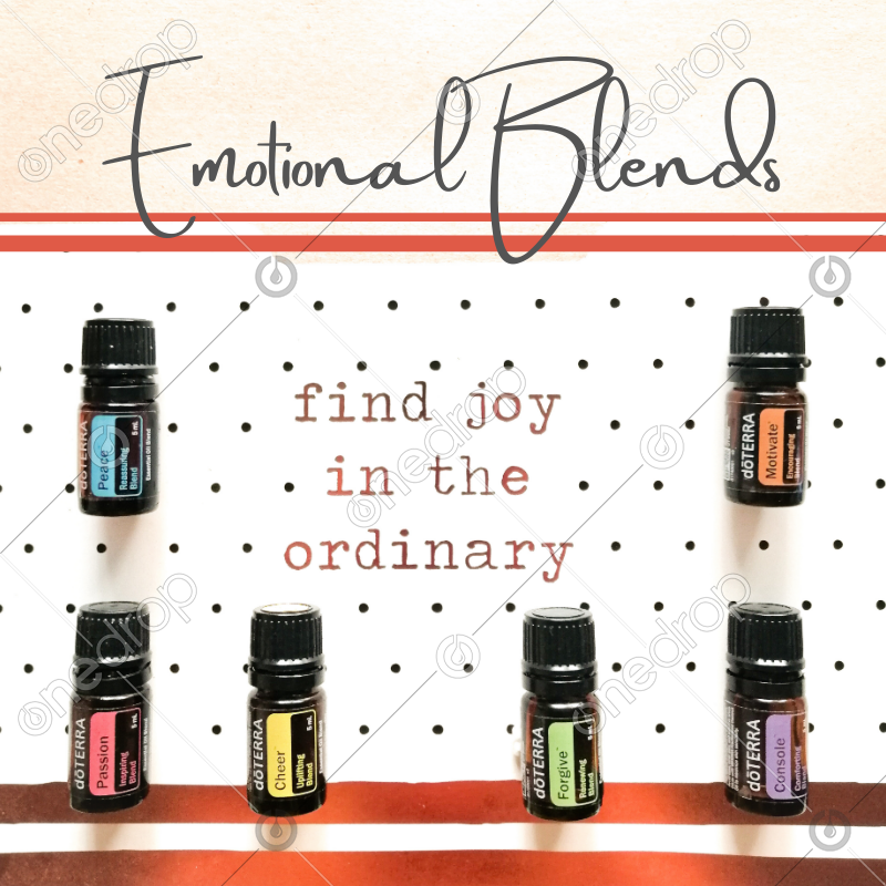 The doTERRA Emotional Aromatherapy System is a revolutionary organization of aromatic plant families around a continuum of emotions for a simple, profound approach to using fragrant essential oils in emotional aromatherapy applications. Individual essential oils can be used with great effectiveness by skilled aromatherapists. doTERRA makes emotional aromatherapy easy and accessible for anyone dealing with common negative emotions with a new line of proprietary essential oil blends representing six categories of emotional well-being. Each delicate blend contains CPTG Certified Pure Tested Grade™️ essential oils that can be used aromatically or topically to help balance and brighten your changing moods. Just a few drops of these naturally complex, fragrant blends can elicit profound emotional responses to help you let go of burdens, find comfort and encouragement, or inspire you to dream with passion again. This kit includes one 5 mL bottle of doTERRA Motivate®, doTERRA Cheer®, doTERRA Passion®, doTERRA Forgive®, doTERRA Console®, and doTERRA Peace® in a beautifully presented box along with your own copy of the Emotional Aromatherapy System Wheel.