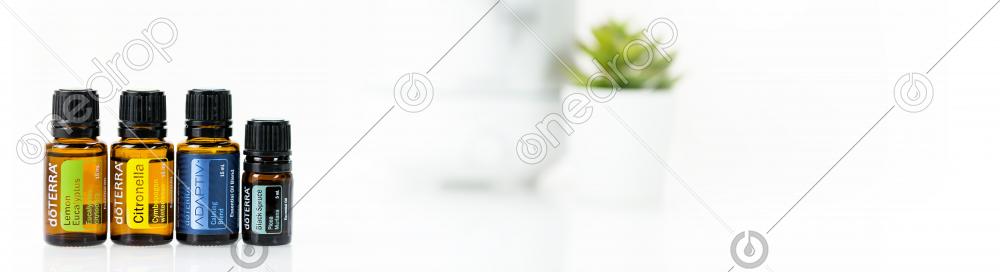 Essential oil bottles with new products 2019 - set with long banner