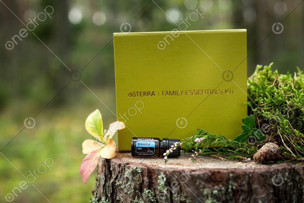 Family essential kit with respiratory blend Breathe outside in green forest