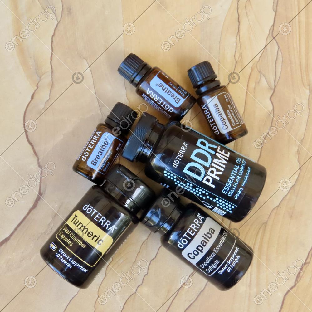 Turmeric, DDR Prime, Copaiba, Breathe on sandstone.