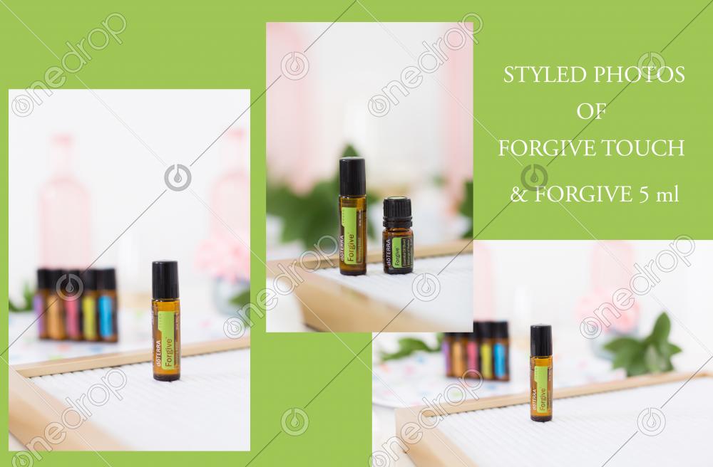 Series of brightly styled photographs of Forgive Touch & Forgive 5 ml.
