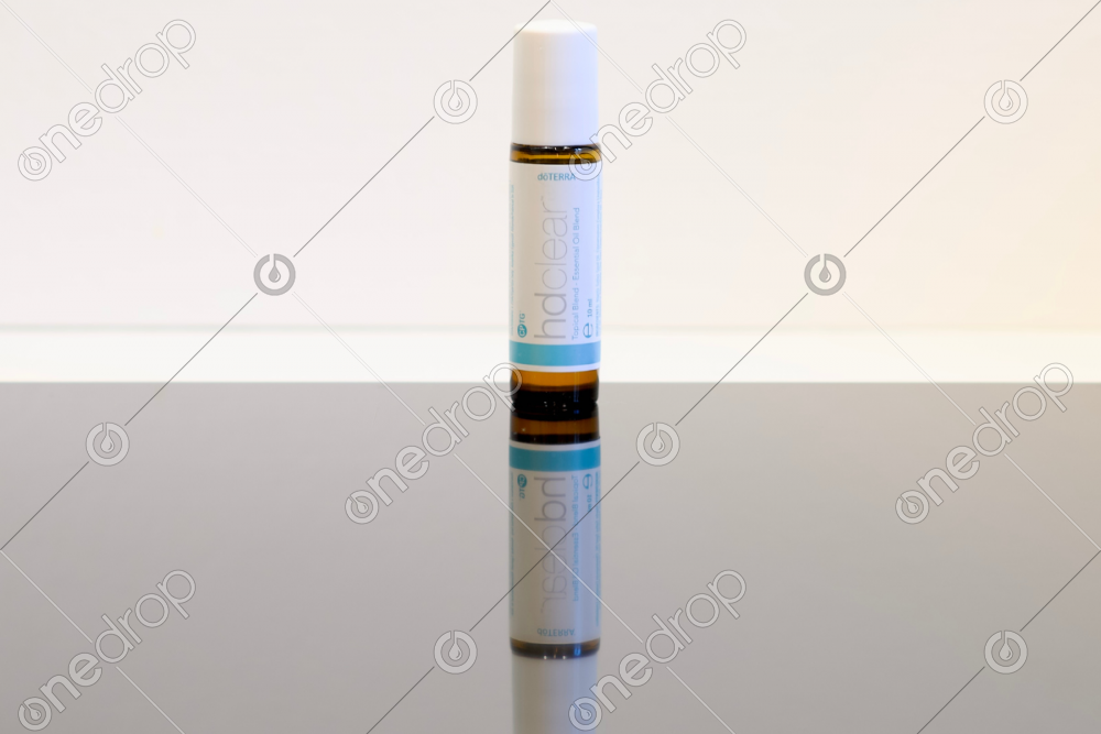 High-resolution photo with HD Clear™ 10 mL roll-on on a mirrored surface.