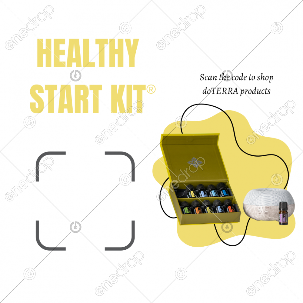 Square infographic of the Healthy Start Kit with a place to put your QR code. Perfect for the refer a friend program.