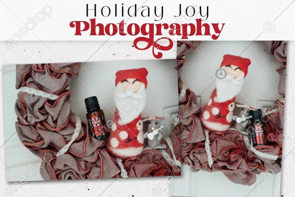 Included in download: 2 stock images of this 15ml bottle of Holiday Joy blend, featured with a cute felt Santa Clause and mouse atop a Christmas door wreath.