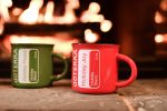 Holiday Peace + Holiday Joy mugs in front of fireplace for social media images, eBook, pdf's.