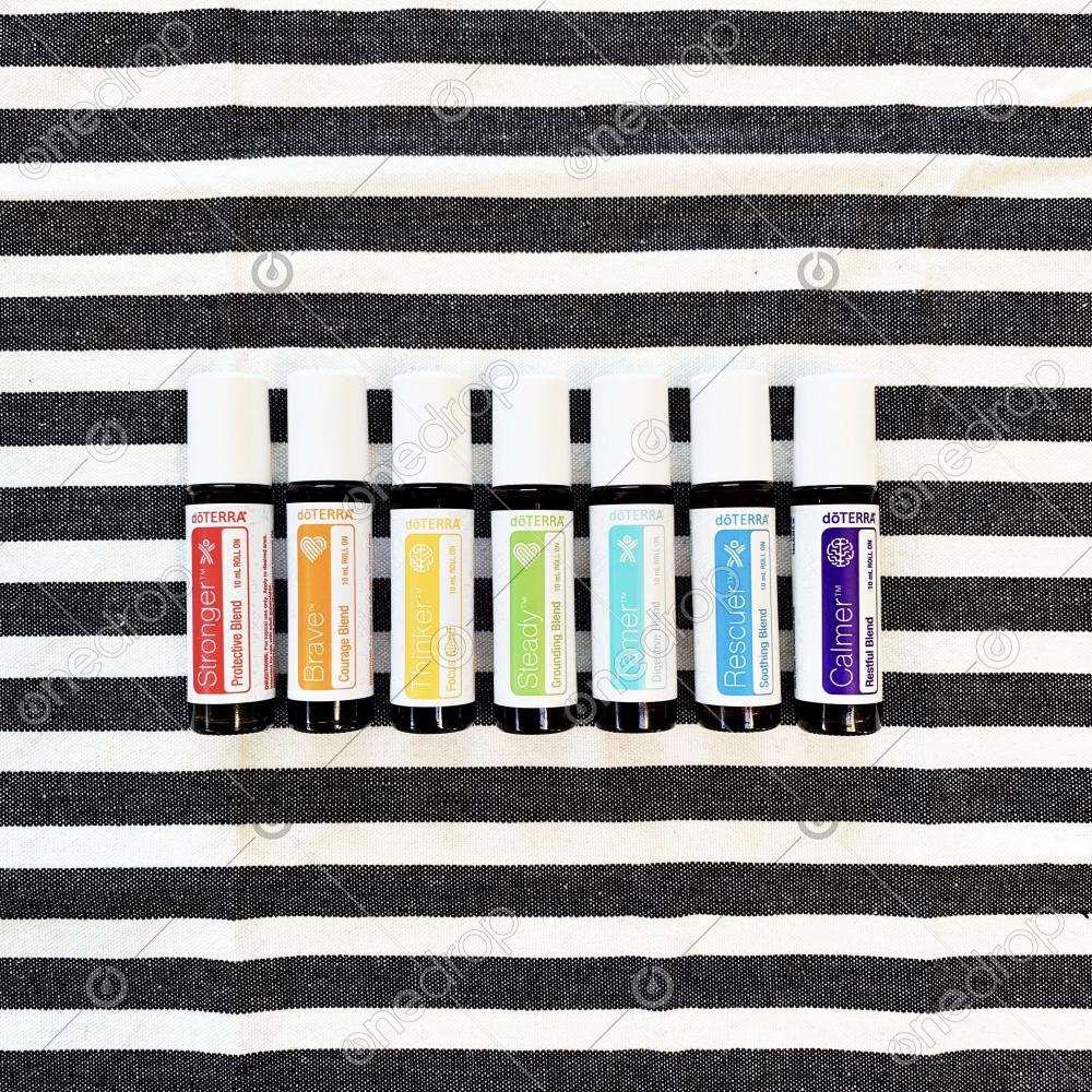 Features the Kid's Collection Rollers: Stronger, Brave, Thinker, Steady, Tamer, Rescuer, & Calmer. 10ml Touch Rollers.