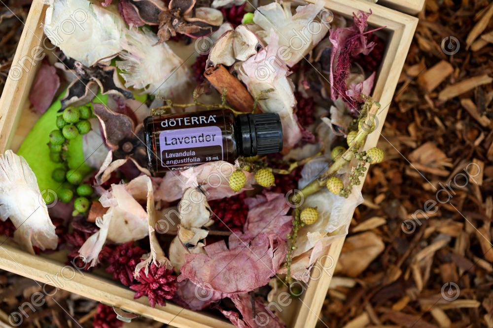 dōTERRA Lavender in wooden box with pretty dried flowers