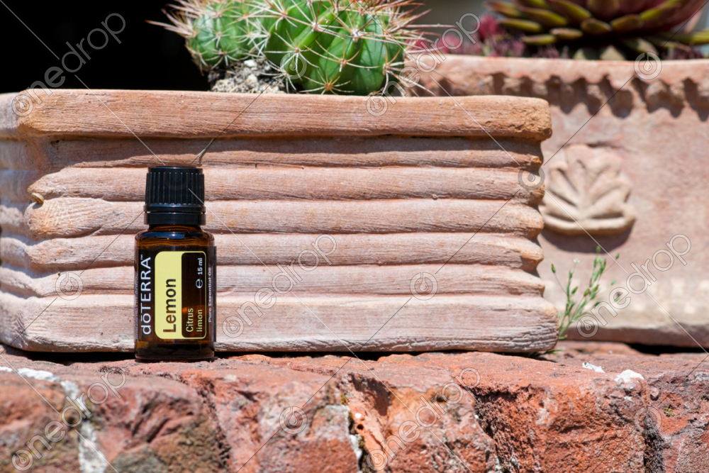 High-resolution image of Lemon 15 ml bottle on a floral background