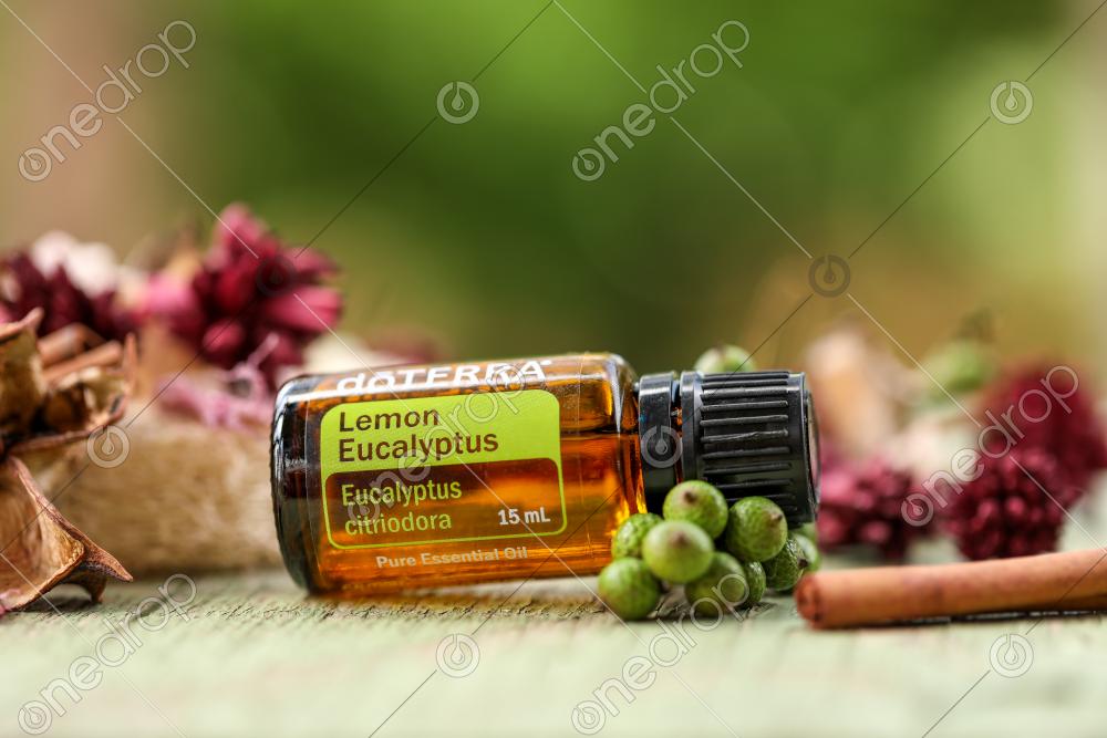 Lemon Eucalyptus in pretty outdoor setting surrounded by dried flowers