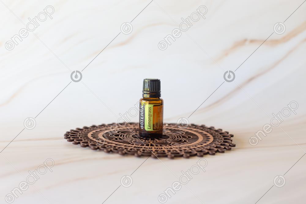 Lemongrass on Wood Mandala With Brown Marble Background