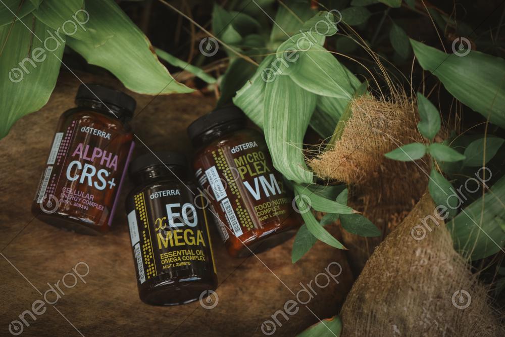 Lifelong Vitality bottles in natural setting from above