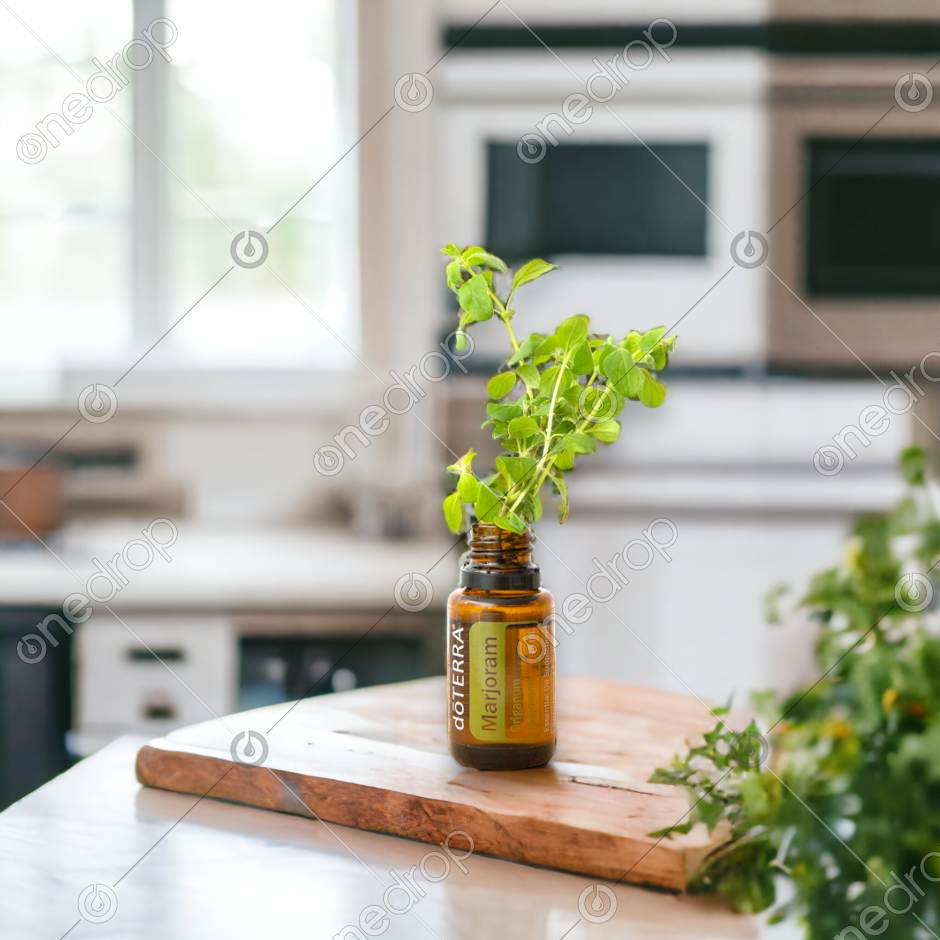 Marjoram Bottle with Herbs in Kitchen