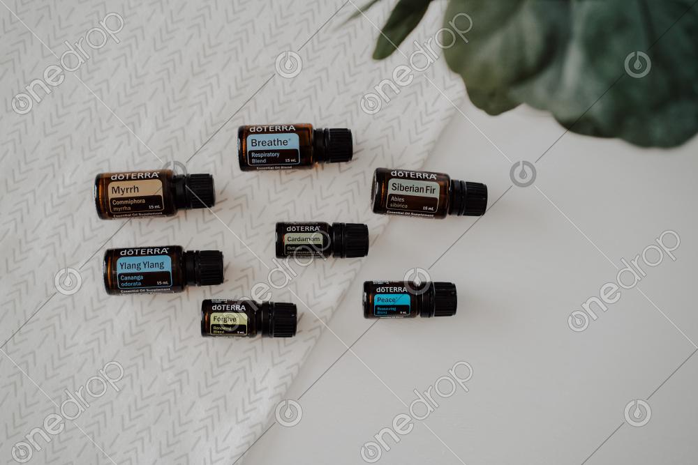 Clean Styled Image: Oils for Anger using Breathe, Myrrh, Cardamom, Siberian Fir, Forgive, Peace and Ylang Ylang.