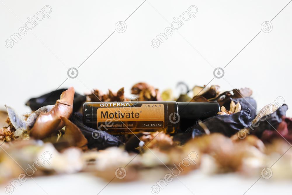 Motivate Roll On with dried flowers and leaves on white background