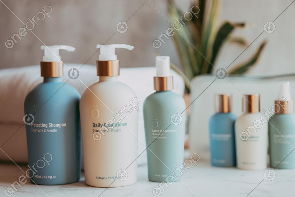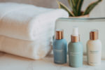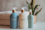 4 photos of doTERRA Full size and mini travel trio hair care kits with bath towels and plant