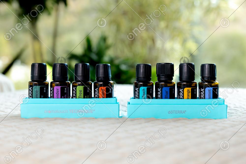 Oils of AromaTouch in the AromaTouch Kit with box holder