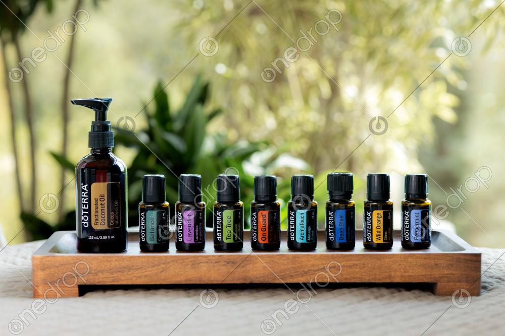 Oils of the AromaTouch Kit + Fractionated Coconut Oil on wood