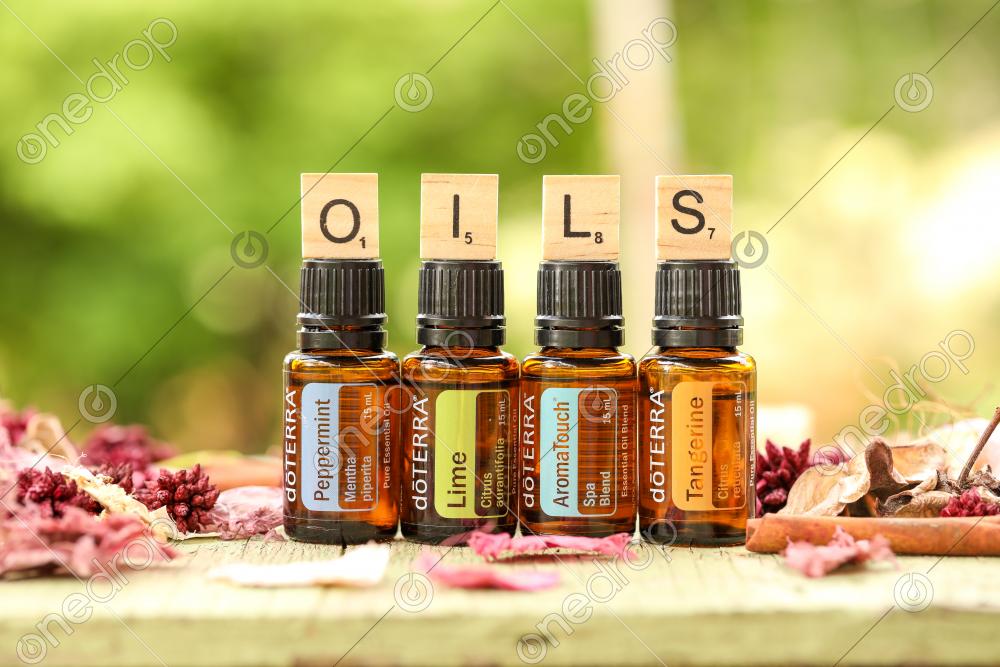 OILS - wooden letters on lids of selection of four 15ml bottles