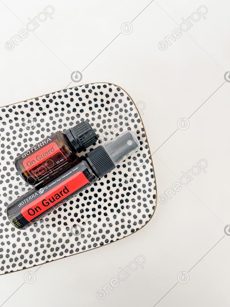 On Guard® 15ml Bottle & Sanitizing Mist Flat Lay