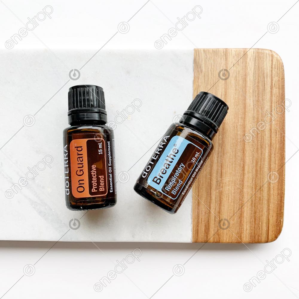 dōTERRA On Guard (15ml) & dōTERRA Breathe (15ml) in a Flat Lay - 3 images