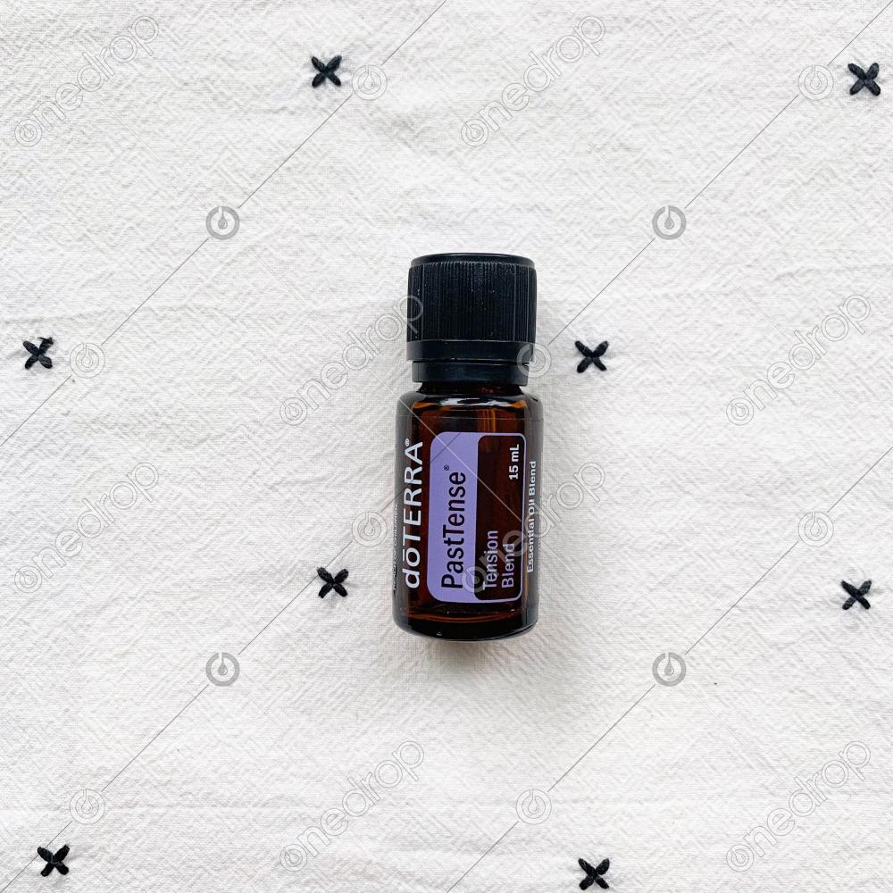 Features PastTense (15ml) Tension Blend in a Flat Lay.