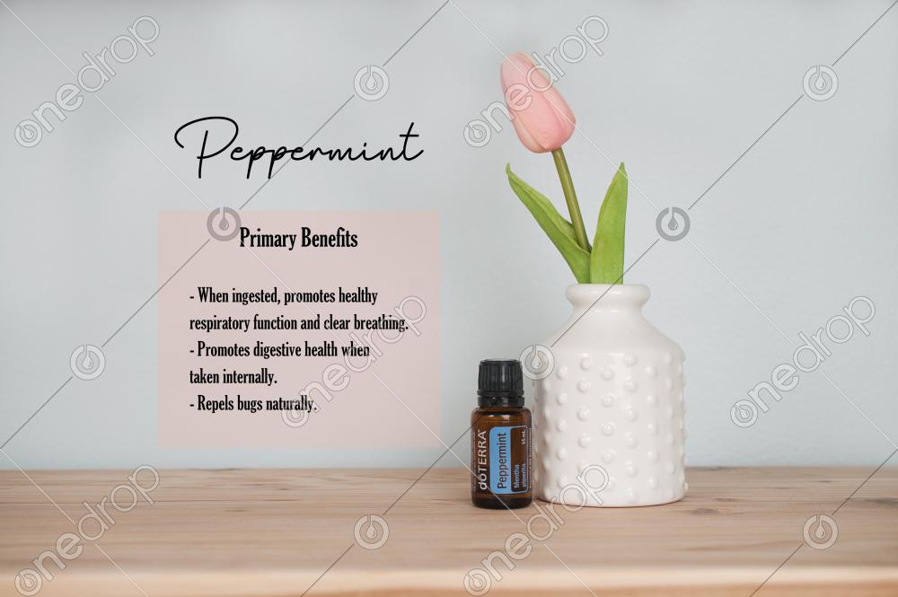 photos of peppermint in my light and airy photo series of the Healthy Essentials kit. three photos, one with text, one blank and one sized for stories.