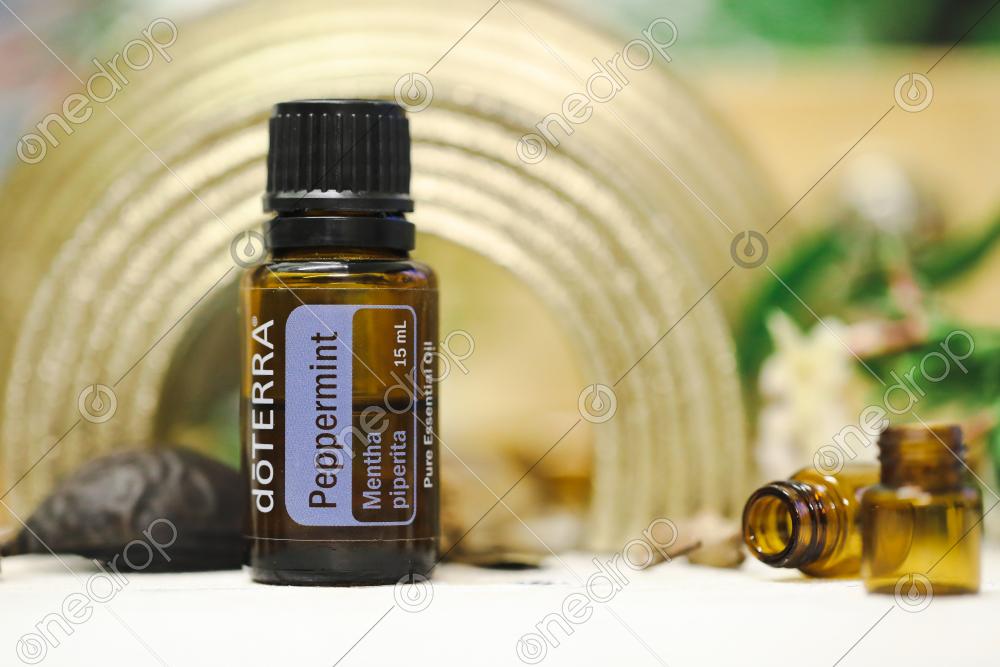 dōTERRA Peppermint with gold rainbow and sample drams