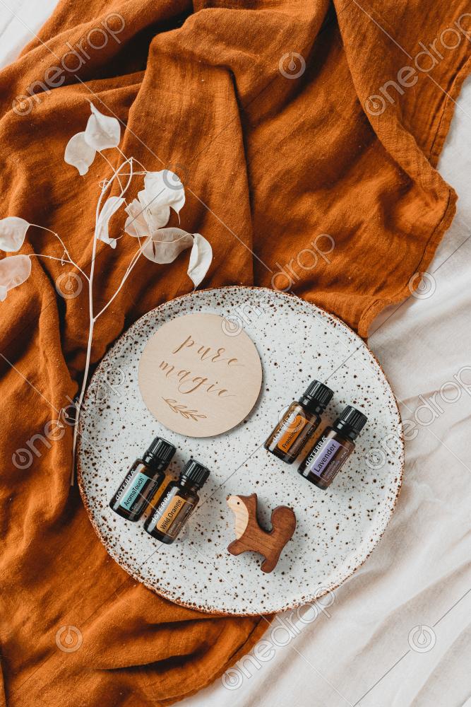 Cute baby related props with lavender, frankincense, wild orange and aroma touch - 4 oils that can help support a mama during pregnancy discomfort.
