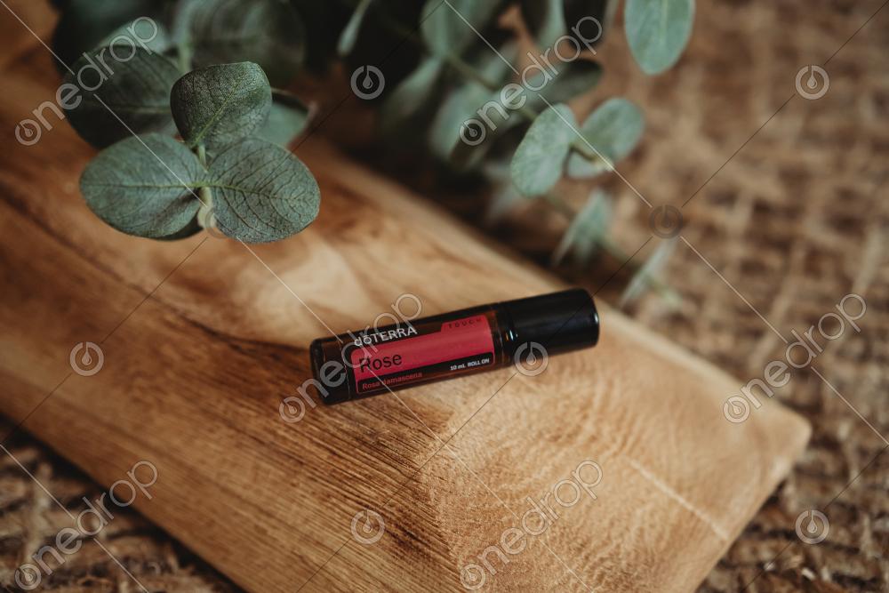 Warm, Earthy Styled Image of Rose Touch Essential Oil