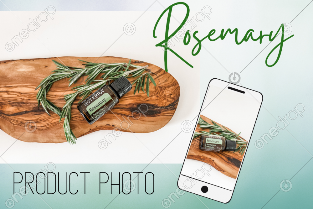 Rosemary Oil Bottle with herb: Simple graphic / Flat Lay
