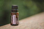 Series of 2 images - Patchouli - The Oil of Physicality - 15ml bottle on wood with natural green background