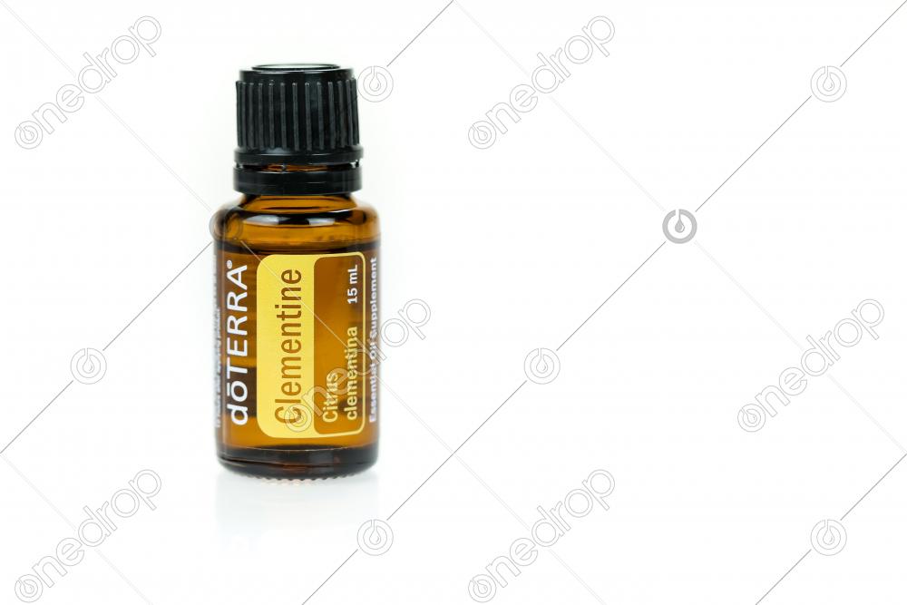 Essential oil of Clementine in 15ml bottle on white background