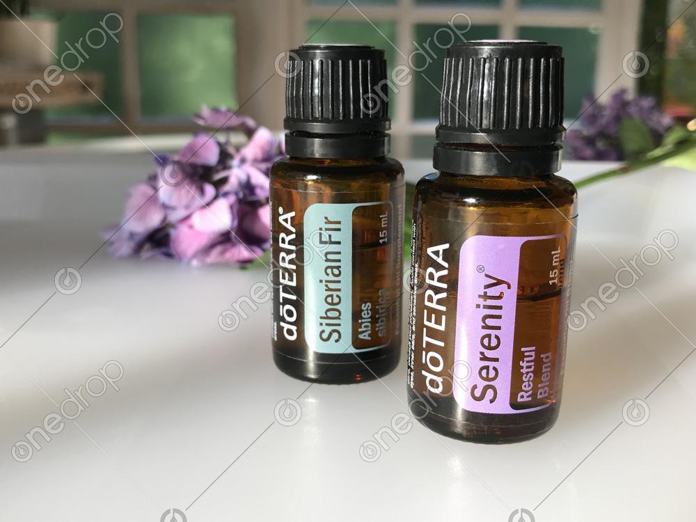 Siberian Fir and dōTERRA Serenity Photo, white table