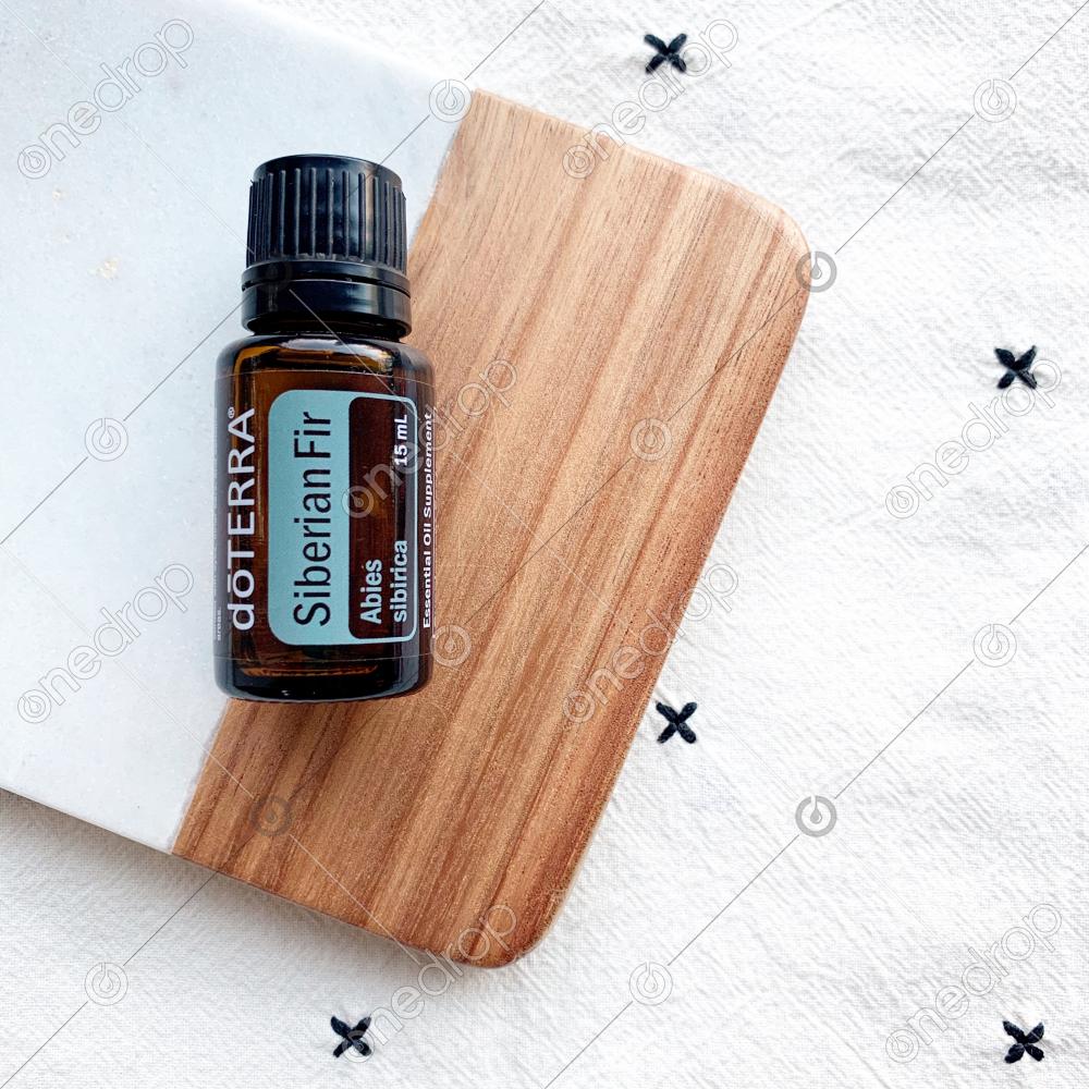 Siberian Fir Essential Oil on a Marble/Wood Background