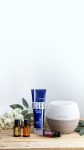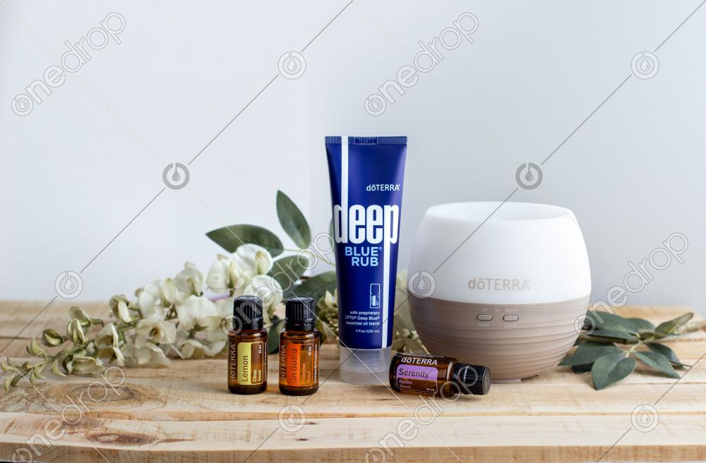 The Simple Solutions Enrollment Kit sitting on wood with Petal 2.0 Diffuser, florals in the background. Products pictured are: