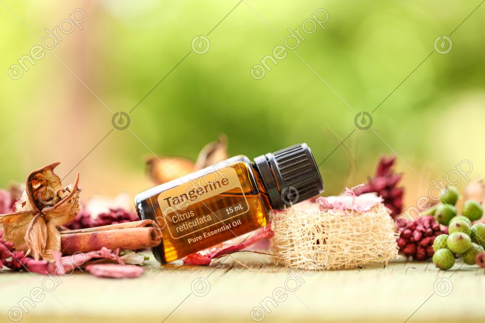 Tangerine in bright outdoor setting surrounded by dried flowers