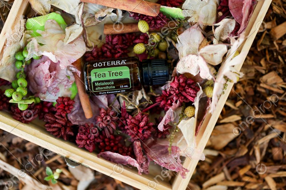 dōTERRA Tea Tree in storage box with pretty dried flowers